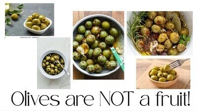 Fruits are usually sweet or juicy, but olives are bitter and salty