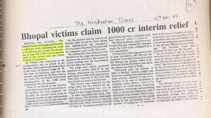 The morcha could assess the right amount of compensation, which was still low from international standards with the help of scholars, proffessors, experts. What morcha demanded was 1000crore from the 3800 crore that union of india got from union carbide corporation to be directly distributed to the victims.