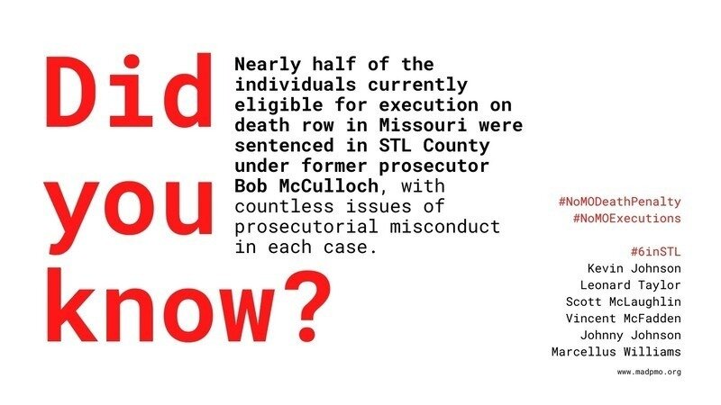 Did you know? 6 of 15 people on death row in Missouri who are eligible for execution were sentenced by former St. Louis County prosecutor Bob McCulloch, including Kevin Johnson.