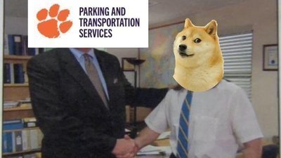 Clemson Parking Services is infamous among students for swiftly and frequently charging students with significant fines despite providing a lack parking for students. Many students have suggested a parking garage or removing buildings in order to build parking areas for students in order to account for the surplus of students the university has accepted. These ideas of parking garages have been shut down as officials have stated it would costs millions of dollars for a single parking spot in a parking garage and that parking passes would be thousands of dollars if they met these requests. This is where doge comes in