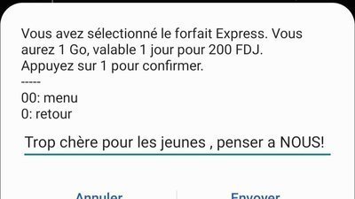 Trop c'est trop, Djibouti Télécom profite de son monopole. Malheureusement ceci n'est pas nouveau. Le manque de concurrence a laissé à Djibouti Télécom l'impunité d'imposer des prix en total décalage du pouvoir d'achat des nombreux Djiboutiens.