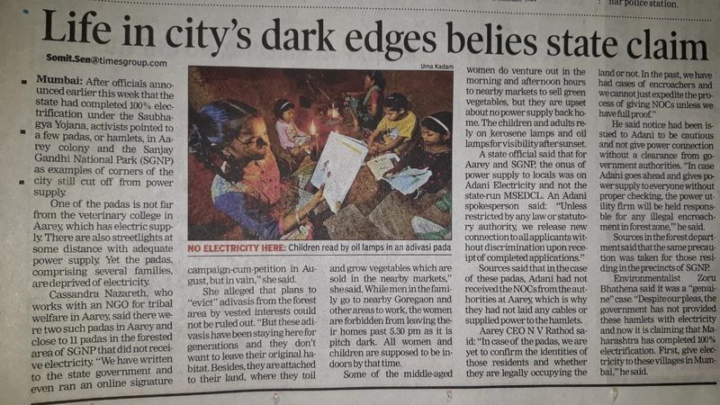 Petition updateSwitch On ! Electricity for Tribal Villages in Mumbai's Aarey ForestHappy New Year 2019!