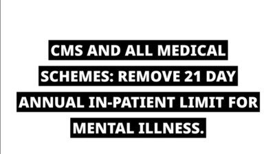 CMS and all medical schemes: remove 21 day annual in-patient limit for Mental illness.