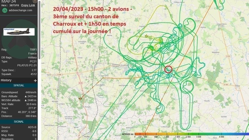 En effet, à ce stade (37 signatures pour 3 500 habitants du canton de Charroux), je ne peux toujours pas saisir la rédaction de La Nouvelle République pour interviewer à nouveau le commandant de la BA709 suite aux articles de presse de mai et novembre 2022 et les nombreux écarts environnementaux constatés depuis fin 2022 : altitude de vol, niveaux sonores au sol, variance des zones d'évolution, fréquence des exercices sur une même zone, prise en compte de la densité des habitations, ... .