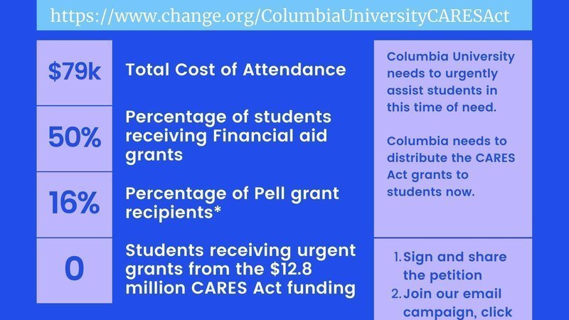 Hello! Thank you so much for signing this petition. We have received over 300 more signatures in the past two days! There is a town hall next week for Columbia College, and I plan on attending and asking about this CARES Act funding. I'm asking you to continue sharing this petition so that we can get to 1000 signatures by next Thursday, July 23rd to present the petition to administration. I think we can do it!! Furthermore, join our email campaign to create more pressure! Click the link below to access a google doc with an email template + the email addresses of administration. If we email them, we will get answers! Thank you again for pushing for this, we deserve more.