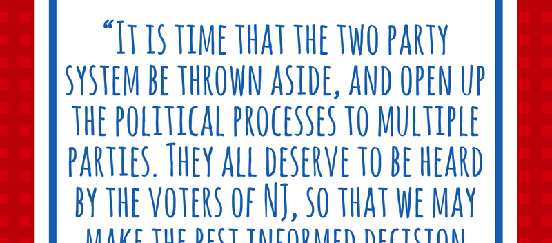 New Jersey is the poster child for what's wrong with our democracy (read the piece we just published to Medium here: https://medium.com/@OpenTheDebates/new-jersey-is-the-poster-child-for-whats-wrong-with-our-democracy-32e80f272be0 ). So New Jersey offers us all an opportunity to pave the way for a healthy political system -- one with open debates and voters inspired to vote for voices they believe in rather than repeatedly voting against candidates they detest.