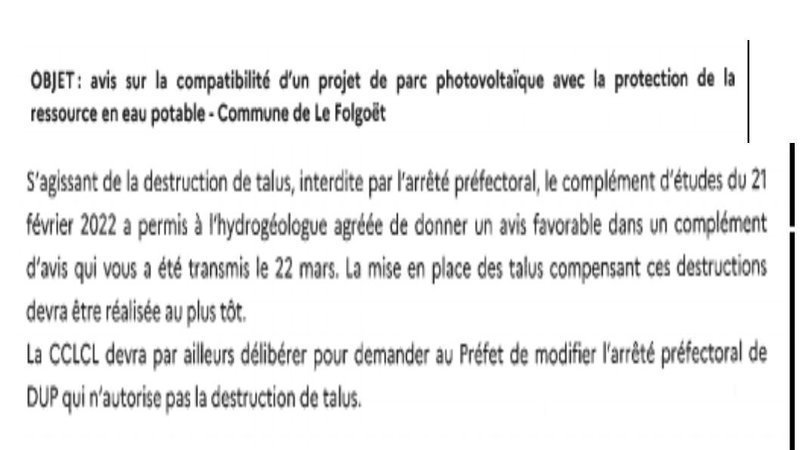 La Communauté de communes CLCL devra donc demander au préfet une modification de l'arrêté préfectoral de Déclaration d'Utilité Publique, qui n'autorise pas la destruction de talus. »