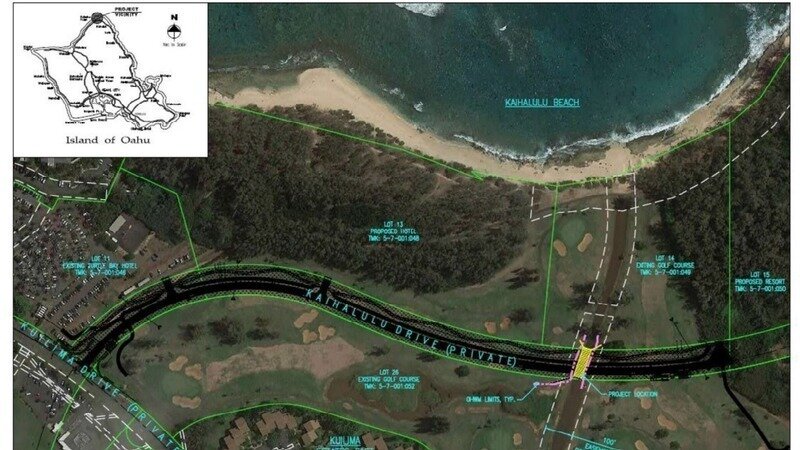 Applicant Wasatch Arete TB Holdings (linked to Turtle Bay Resort landowners Host Hotels & Resorts) is seeking approval of a Stream Channel Alteration Permit (SCAP.6438.3). The proposal would install a new culvert system for roadway access within the Turtle Bay Resort property, crossing ʻŌʻio Stream (East Main Drain) in Kahuku, Oʻahu.