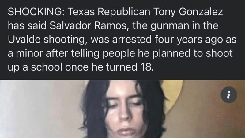 Update from local news of Uvalde shooter. He KNEW he could buy AR-15’s once he turned 18…he was arrested just 4 years prior for saying he would do this.