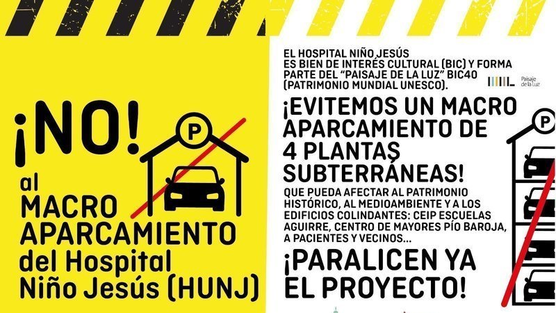 Ante el inminente comienzo de las obras anunciadas por el Gerente del Hospital Niño Jesús (HNJ), la Asociación Vecinal Retiro Norte (AVRN) alerta de las nefastas consecuencias de la construcción de un macroparking bajo la ampliación proyectada del Hospital Niño Jesús (BIC 40 de Paisaje de la Luz, Patrimonio Mundial de la UNESCO)