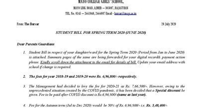 Concession in Fees for Mayo College Girls school and Mayo college Ajmer in Covid-19 time.