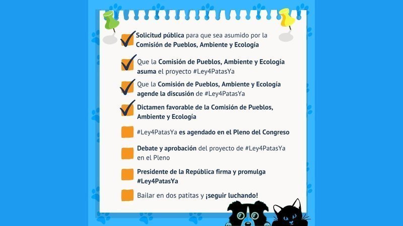 ¡Este jueves 1 y viernes 2 de Julio se debatirá en el Pleno del Congreso de la República del Perú el proyecto de #Ley4PatasYa! Gracias a la Bancada Frente Amplio por haber pedido su priorización y a las demás por respaldarlo.