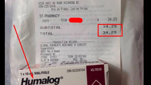 Thanks to everyone for signing, sharing, contributing money to promote the petition and following this. If you're a twitter person, continue to share it on twitter. I don't have a twitter acct. I continue to share with some news outlets as more information comes out each day. I'm convinced that we need to get insulin available without prescription. I saw some information today, a graph, that shows the price gouging happening at the PBM and insurance company level but the money is returned to the insulin companies, (the clawbacks), not us. Here's a copy of a receipt from an insulin purchase in Canada, over the counter for a bottle of humalog. This is without insurance. So eliminating the PBMS and insurance companies would be a huge success. Now we need to get America to listen to this proposal. Keep writing to your senators and congressmen and women.