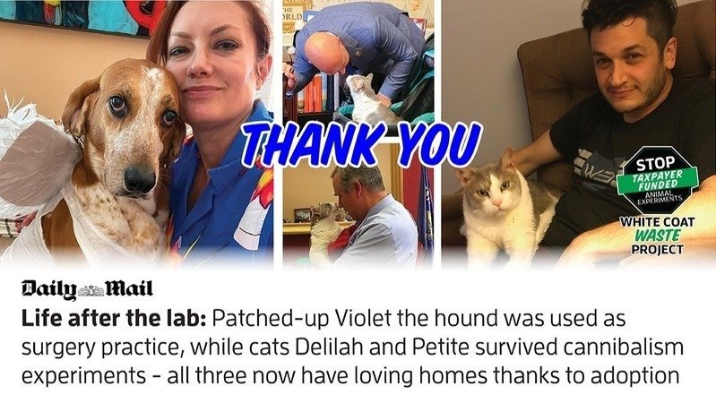 It followed a year-long campaign by the White Coat Waste (WCW) project watchdog, which Ms. Germany helped co-found the year before she took in Violet.