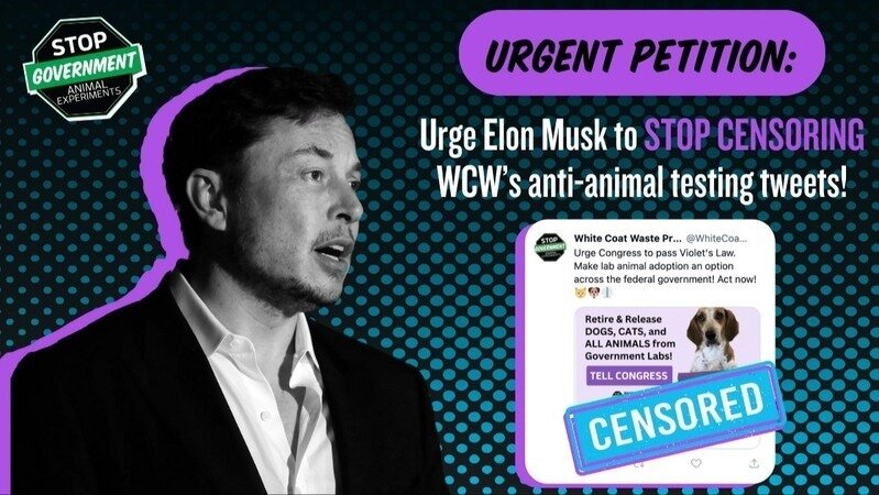 Elon Musk's Twitter has BANNED all White Coat Waste Project (WCW) ads on the platform. They're cutting us off from reaching our own supporters to take action against cruel and wasteful government animal testing!