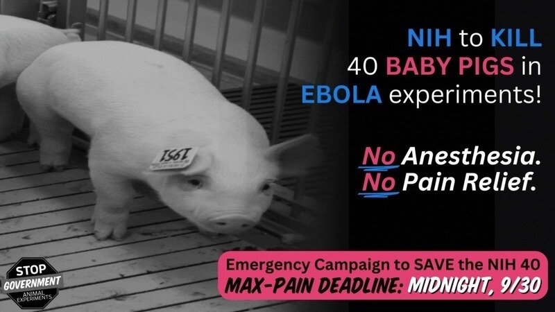 If we don’t stop this NIH payout (grant #ZIAAI001089), 40 more piglets may be infected with the EBOLA VIRUS and left to suffer without any pain relief at all… not even Tylenol.