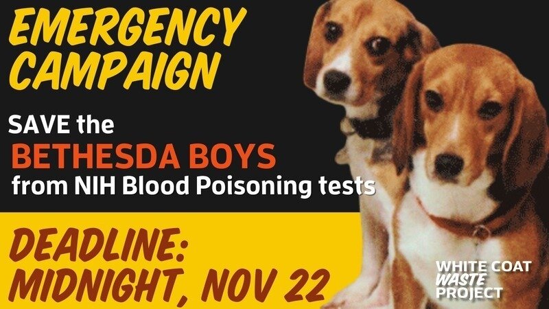 EMERGENCY DEADLINE: Rush a secure, generous gift to our NEW rapid response campaign and help stop the National Institutes of Health from poisoning the “Bethesda Boys” in SEPTIC SHOCK experiments!
