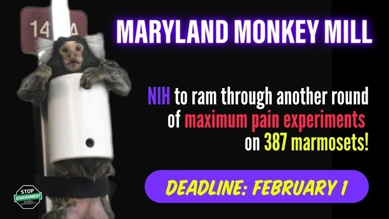 P.S. 2/1 EMERGENCY DEADLINE: We cannot stand idly by while 387 more innocent marmosets suffer. Your support is crucial to fund an EFFECTIVE Rapid Response campaign that will pressure NIH to end this lab and prevent other maximum-pain experiments from being funded in the future.