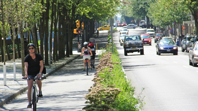 - A protected bike lane/cycletrack. NACTO guidelines for two different designs are here and here, and here are some of the benefits and statistics.