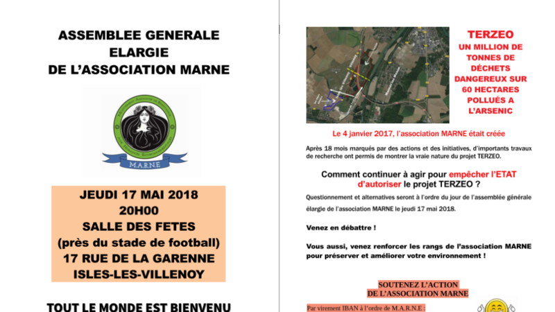 Pour poursuivre l'action contre le projet TERZEO, participez à l'Assemblée Générale élargie de l'association MARNE