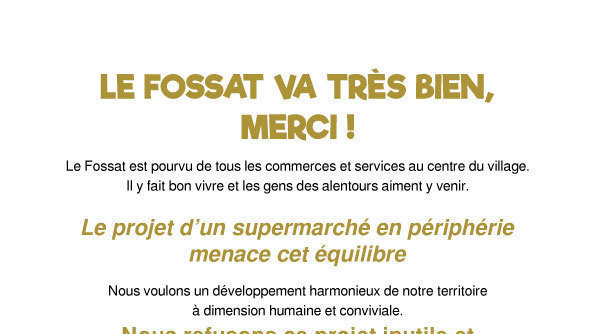 Mise à jour sur la pétitionDe l'inutilité d’un nouveau magasin Carrefour au FossatDéambulation festive le 26 mai : Allons faire nos courses au rond-point !