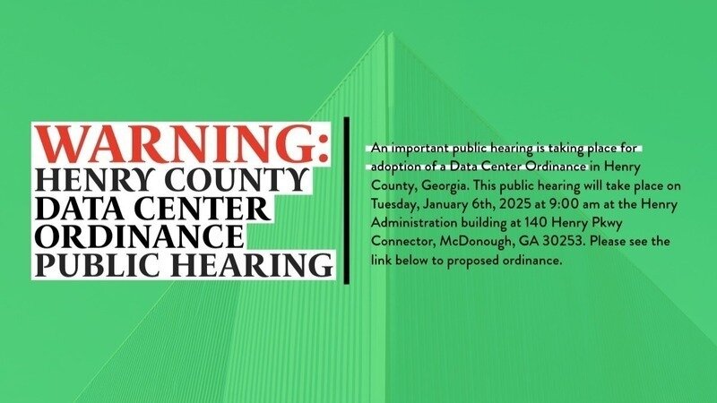 Mark your calendar & spread the word! The Henry County Board of Commissioners is holding a DATA CENTER ORDINANCE Public Hearing: