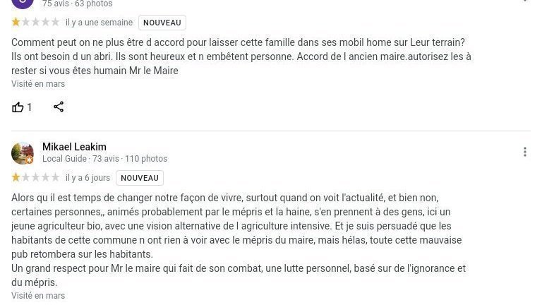 Petition updateContre l'expulsion de leur ferme de ces maraîchers bioDes messages de soutien dans les avis Google