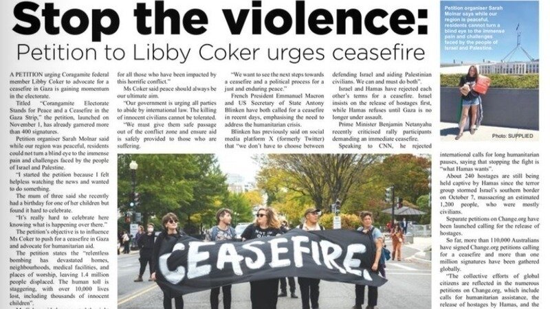 A quick update on the petition calling for a ceasefire by the Australian Labor Party and our local MP Libby Coker.