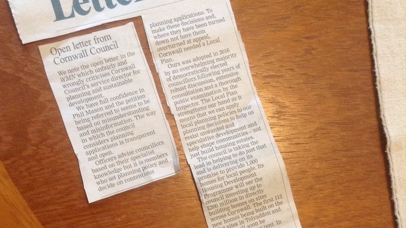 Petition updatePlanners, Councillors, Inspectors and MPs have failed Cornwall and MUST stop the damageCornwall Council attempts to justify and defend its destructive and corporate-hugging planning dept.