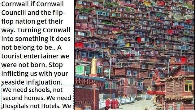 What we don’t need is a spineless Cornwall Council cabinet, complicit planning department and dubiously driven directorate, playing the developers’ tune to build anything but these, at 2.7 times the rate of development of anywhere in the UK, all over our greenbelts, greenfields, farms, woodland, pastures and meadows, along this thin strip of land, purely for profit that will benefit NOBODY in Cornwall, but put astronomical pressure on our crumbling infrastructure as well as adding an untold debt burden on future generations of Cornish kids.