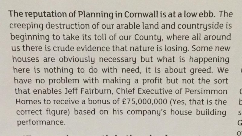 So come on Cornwall, think about our beautiful County (sic) and make some moves to challenge over-development.