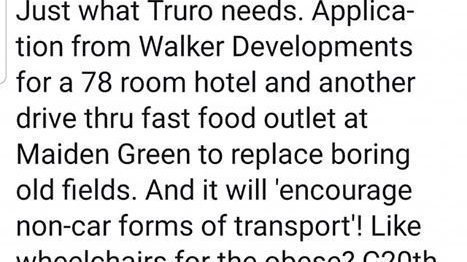 “Planning ref PA19/07792. I can't believe they want to build even more houses in Goonhavern! Surely, we must have met the local plan target by now, as loads of houses built here last few years! Ridiculous!”