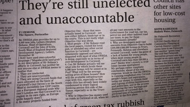 Note the photo at the top which is of a letter that was published in the West Briton in 2006, over 15 years ago (!) regarding Cornwall’s unsustainable housing growth, already providing at that time little if any truly affordable homes for locals despite the accelerating rate of construction carnage...