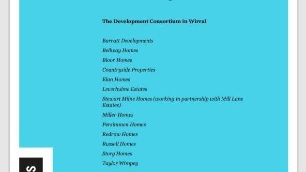 Its not just Leverhulmes who are threatening Wirral's Green Belt. THIRTEEN HOUSE BUILDING COMPANIES have set up a WIRRAL DEVELOPMENT CONSORTIUM to CHALLENGE Wirral Council's Brownfield Only Local Plan - WE NEED YOUR HELP TO CHALLENGE THESE DEVELOPERS