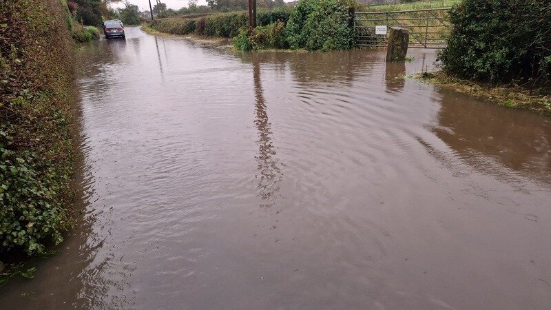 The fields are saturated, there is no where else for the water to go and it is running off the fields and flooding the highway. This is China Farm Lane in Newton today. This is not "exceptional" weather, this is the "new normal" now.