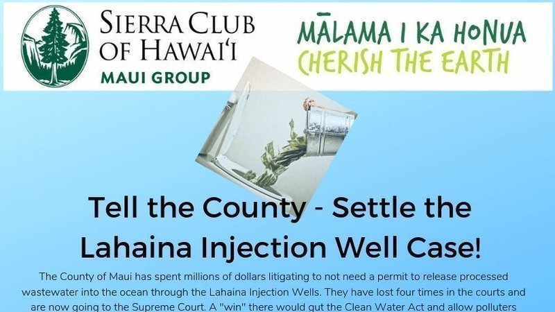 The County of Maui has spent millions of dollars litigating in order to release processed wastewater into the ocean through the Lahaina Injection Wells without a permit. They have lost four times in the courts and are now going to the Supreme Court.