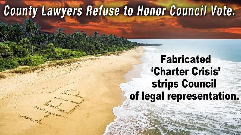 The County Council must have a legal representative who follows directions. If Moana Lutey refuses to do that then the Council must vote to hire its own lawyers.