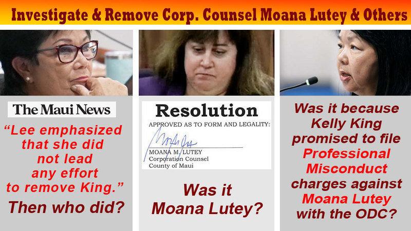A similar complaint to the 2nd Circuit naming Moana Lutey for refusing to get the Court’s opinion about the Mayor’s authority to overrule the Council before she represented to the Supreme Court was filed by State Rep. Angus McKelvey, Maui Tomorrow, former Maui County Council Member Joanne Johnson Winer; former Maui County Ocean Safety captain and waterman Archie Kalepa; and Native Hawaiian rights activist Ke`eaumoku Kapu.