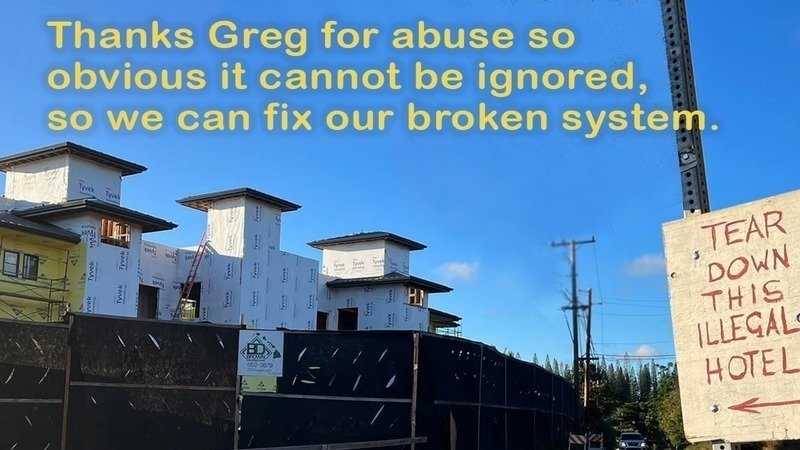 Purely because of Citizen Outrage, our County Council is considering a formal Council Investigation into the many wrongdoings that allowed Greg Brown to build his Napili monstrosity.