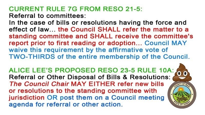 Maui’s community is also outraged at the dark-government choice to restrict public testimony to only two minutes and then only when each agenda item is specifically called, rather than allowing us to testify for three minutes on each item all up front, at once, at the start of the session.