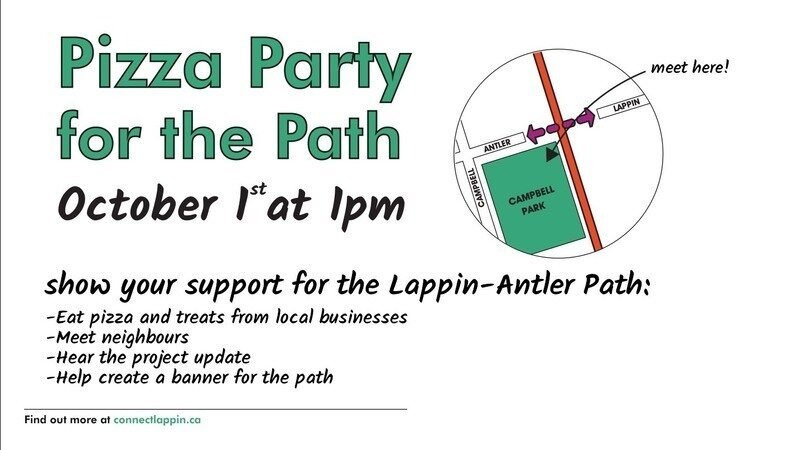 Hey neighbour! We’re just four days away from our pizza party to show our community’s support for the Lappin-Antler path.