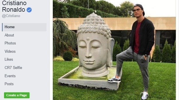 There is a picture posted on facebook by Cristianlo Ronaldo on 10/2/2016 disrespecting lord Buddha by placing his foot on a statue of Lord Buddha.