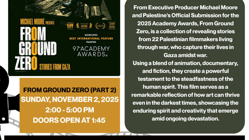The film screening will be followed by Palestinian refreshments, Moderated Listening Circles, and a Resource Fair sponsored by grassroots activist organizations across the Hudson Valley who will share upcoming initiatives and opportunities for YOU to take action.