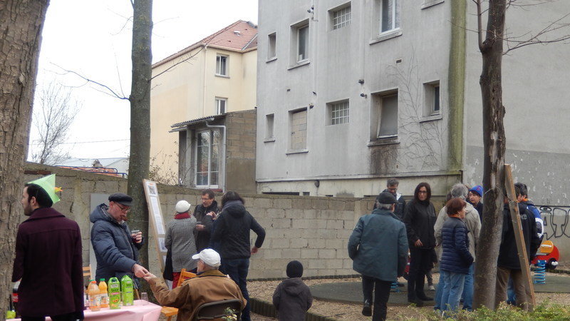 Plus de 50 personnes malgré le week-end de pâques sont venues apporter leur soutien au collectif de défense du Square Truffaut ce samedi.