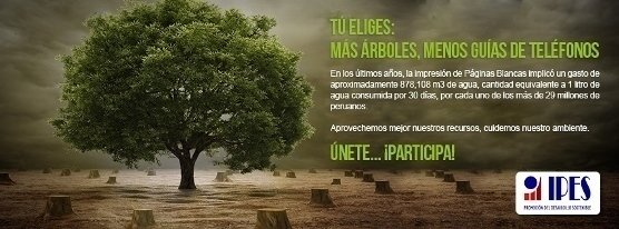 En el Perú, casi 14 millones de guías telefónicas páginas blancas han sido impresas y distribuidas en los últimos cinco años, lo que significó la tala de 585,374 árboles (área equivalente a 650 canchas de fútbol); además se generaron 38,582 toneladas de residuos, gran parte de los cuales no son reciclados.