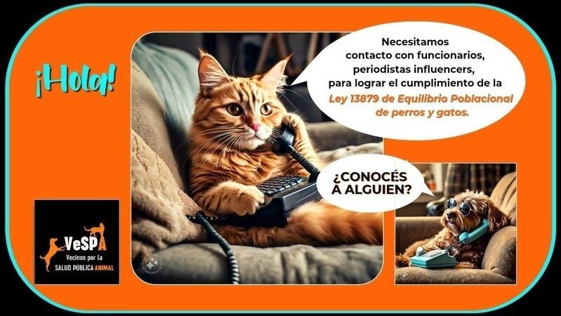 🙌 Necesitamos de la ayuda de todos para lograr que el Municipio cumpla con la ley 13879 y alcancemos el equilibrio poblacional de perros y gatos.