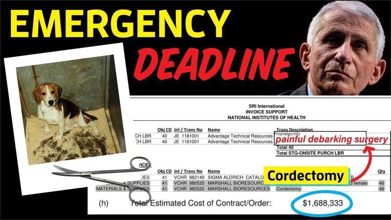 BUT YOU CAN STOP HIM: Our emergency efforts to end Fauci’s cruel and wasteful de-barking experiments on beagles is gaining major momentum.