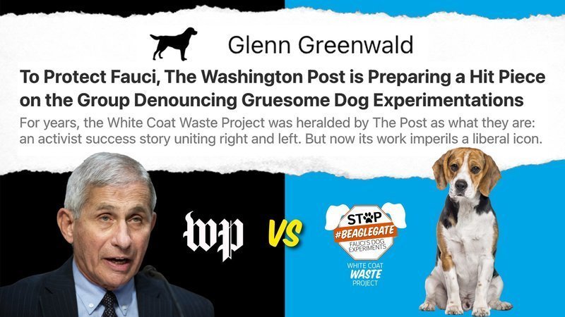“To Protect Fauci, The Washington Post is Preparing a Hit Piece on the Group Denouncing Gruesome Dog Experiments” – GLENN GREENWALD