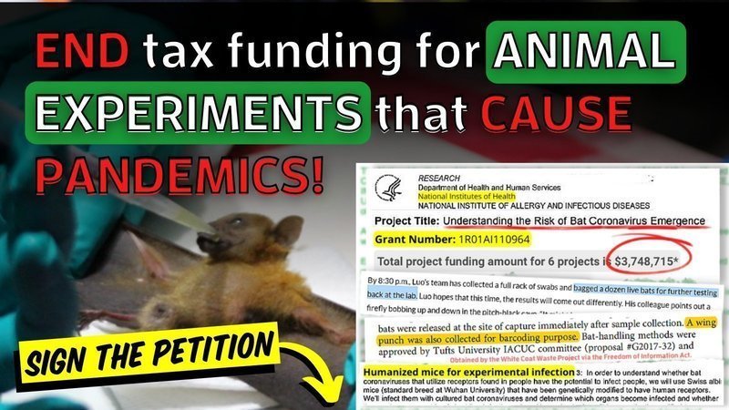 STOP PAYING FOR GAIN-OF-FUNCTION ANIMAL EXPERIMENTS THAT CAUSE PANDEMICS: https://bit.ly/STOPGOF