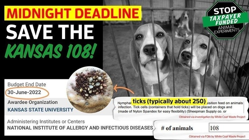 MIDNIGHT DEADLINE: Please use this secure link to take immediate action to help us stop NIAID white coats from torturing and killing the Kansas 108!
